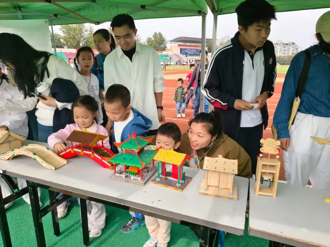 在现场观摩区,直升机、拨浪鼓、大风车、猫头鹰等会动好玩的“鲁班木创”作品,廊桥、虹桥、垂花门、爱晚亭、杭州雷峰塔、山西应县木塔等古色古香的“建造大师”作品,让众多学生和家长在驻足欣赏中感受“造创鲁班”课程对于中华优秀传统文化的传承与发展。